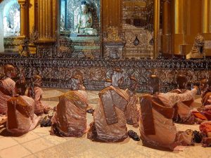 buddhistische Nonnen am Vollmondlichterfest auf der Shwedagonpagode in Yangon