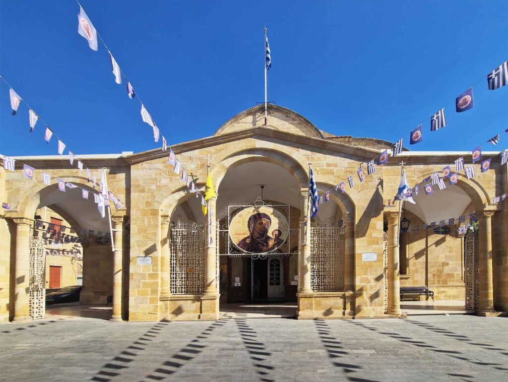 Bischofspalast mit der Statue des Erzbischofs und Präsidenten Makarios III.